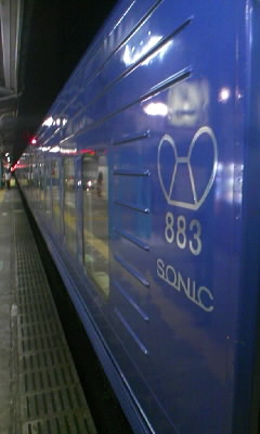 2010.07.28 神戸から別府へ 神戸から小倉まで「のぞみ」に乗る。ON’S三人で新幹線打上げ!バンドらしい深い話をしました。小倉から大分までは九州の新幹線「SONIC」に乗りました。本州の新幹線とは全然デザインが違って、ヨーロッパを旅している様でした。 大分について、やまばと幼稚園の職員と美味しい地鶏、もつ鍋を頂きました! 七輪の上に地鶏をのせ、その上にクレソンをどっさりのせて焼くのです!最高でした。 そしてデザートには「クレソンアイスクリーム」。食べるまで抵抗があったが、食べてびっくり最高に美味しいです。系統としては抹茶アイスに近いですが、もっと爽やかでした。お勧めです。今日は別府温泉でゆっくりします。