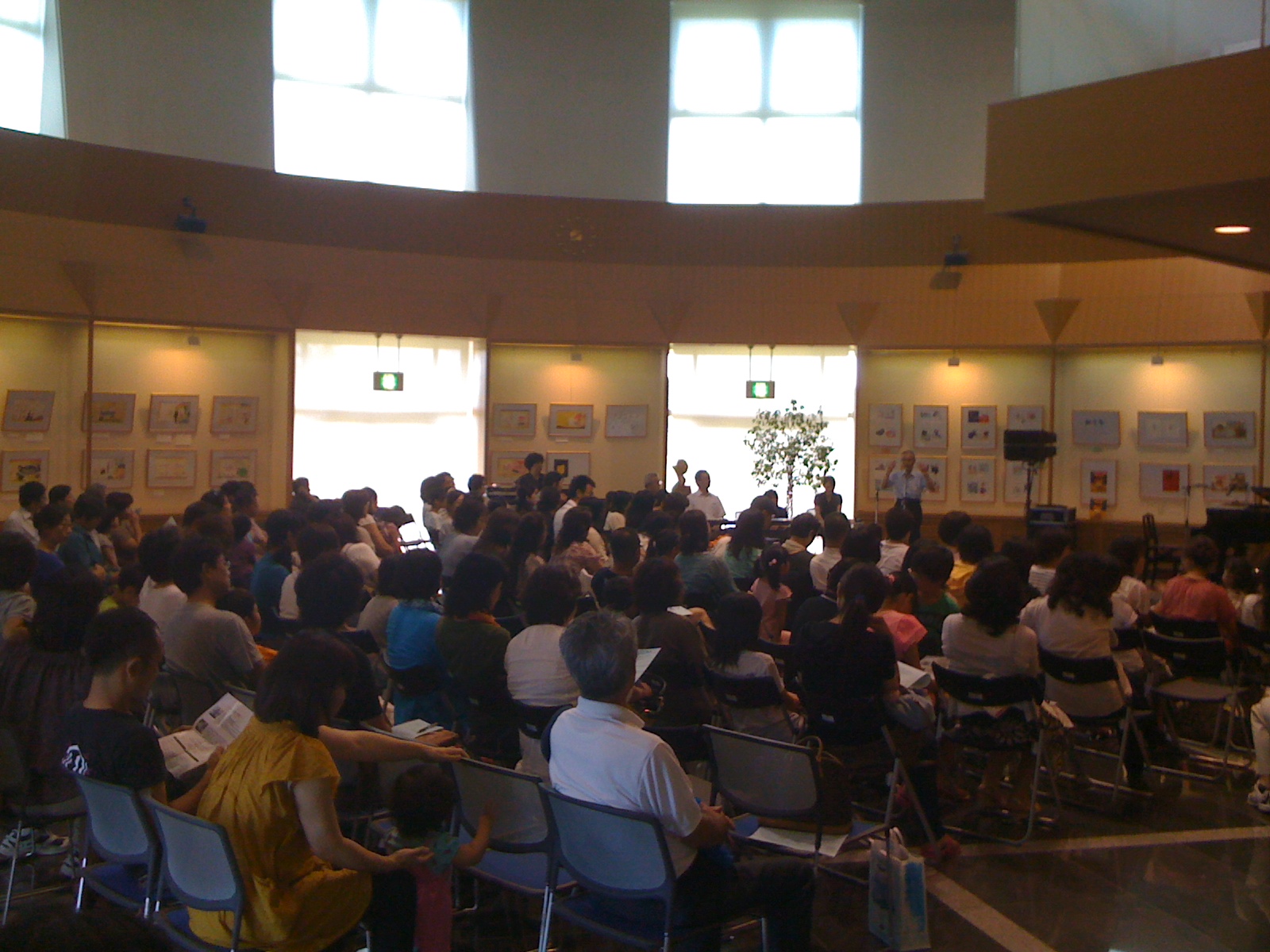 今回は「中川ひろたかと五人の絵本作家たち」というイベントで、中川さんと絵本を作っている荒井良二、長谷川義史、高畠純、大島妙子、村上康成の原画展でした。一度にこんな沢山の原画を見れるのは珍しいですね。湧水町のホールに沢山飾れて素晴らしかったです。原画のある絵本を全て読みました。