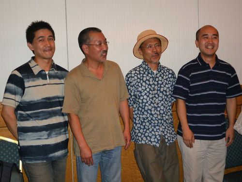 コンサート終了後、あべさん、長谷川さん、山上さんと一緒に雑談。そして受講生に囲まれて記者会見状態。。。