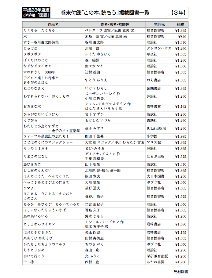 今年から3年間、光村図書の小学3年生・下巻の国語「あおぞら」にて