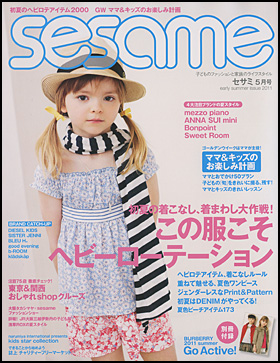 2011.04.19 朝日新聞出版「sesami 5月号」に登場 朝日新聞出版発行のキッズファッション誌『sesami』5月号の「Interview」で取り上げられています!私の音楽活動や思いについて語っています。是非読んでみてください!