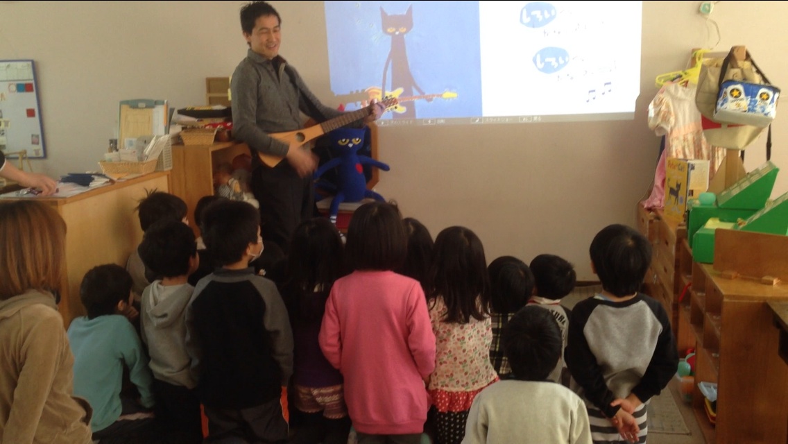 実は昨年12月から毎週のように全国の幼稚園、保育園、図書館、LIVEなどで「ねこのピート」”絵本の音楽LIVE”を行い、子どもたちの反応を見ながら翻訳作業を進めてきたのです。