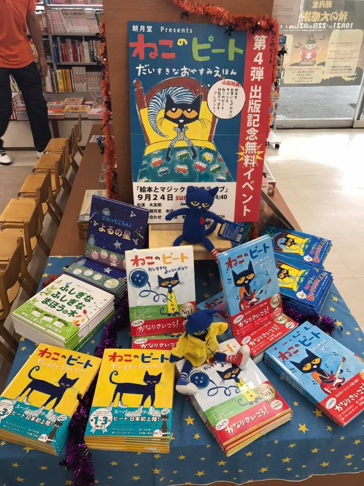 2017.09.24 ねこのピート 第4弾 出版記念イベント in 甲府 9/24 甲府市・朗月堂にて「ねこのピート 第4弾」出版記念イベント開催! 会場に入りきれないほどの親子が来てくれました。 ピート第4弾は、おやすみ絵本なので静かな物語ですが、途中でリズム遊びがあるので、 読み聞かせでもちょっぴり盛り上げることが出来ます。 この日はリズム遊び、Call & Responseで楽しめました。 来ていただいた皆さん、朗月堂の皆さん、ありがとうございました!