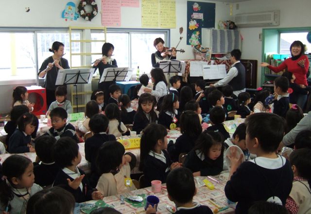 2009.12.16 クリスマスディナーショー!? 横浜の幼稚園でクリスマス会! 毎年恒例で今回3回目の参加。まずは子どもたち、保護者へのマジックショー!サンタさんも来ていただので、サンタさんの魔法も借りて大盛り上がり! クリスマス会の後は、子どもたちがケーキを食べるのですが、その時に保護者の素敵なバイオリン、フルートと共に生BGM!まさに子どもたちのディナーショーみたいな感じ。こどもたちは生演奏聞きながらまったりケーキを食べる。非常に贅沢な時間でした。カルテットでの演奏が楽しくあっという間に終わってしまいました。楽しいひと時でした!